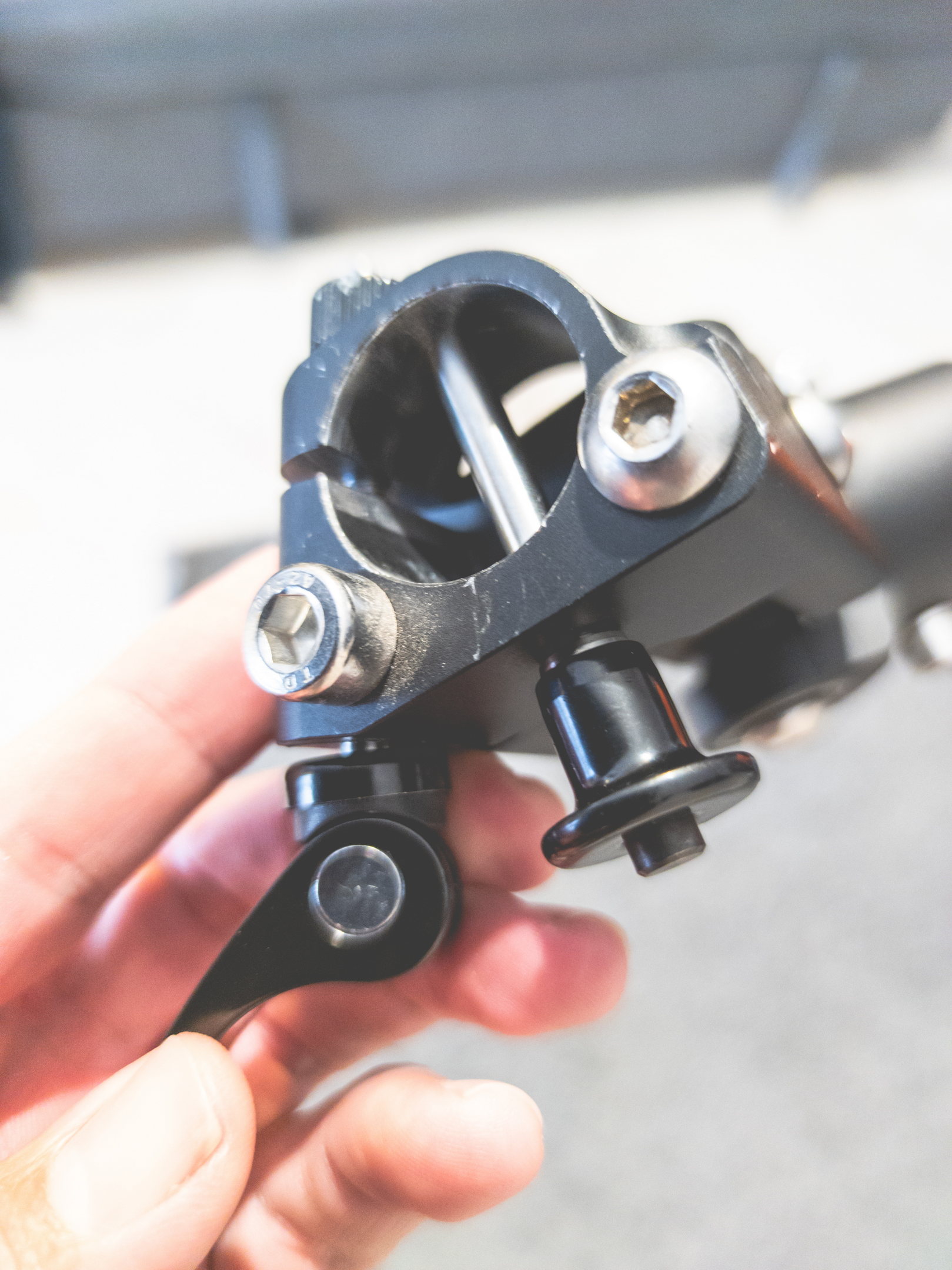 O braço monta-se rapidamente por eixos de aperto rápido, como os eixos das rodas das bicicletas e ao acoplar no adaptador do espigão tem um pin de segurança. Atenção que é necessário comprar o adaptador do espigão em separado e de acordo com o diâmetro do mesmo. Recomendamos também pedir um 2º pin de segurança que dado que é uma peça fácil de perder.