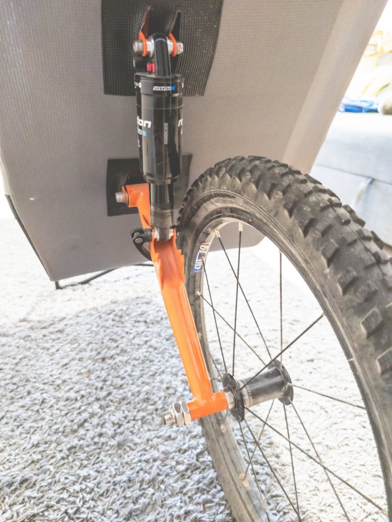 A maioria dos atrelados para transporte de crianças baseiam-se num sistema de duas rodas com um braço que liga ao eixo da roda traseira. Este sistema permite na maioria das marcas ser usado também como carrinho de criança acoplando uma ou duas rodas a frente. No entanto ao terem duas rodas são pesados e podem tombar nas inclinações. O Singletrailer da Touteterrain elimina esses dois contras usando apenas uma roda com suspensão de ar tal como as das bicicletas de suspensão total. Por ter só uma roda o atrelado inclina com a bicicleta e portanto só tomba se a bicicleta também tombar. Alem disso é mais estreito o que ajuda a passar nos caminhos estreitos de BTT.