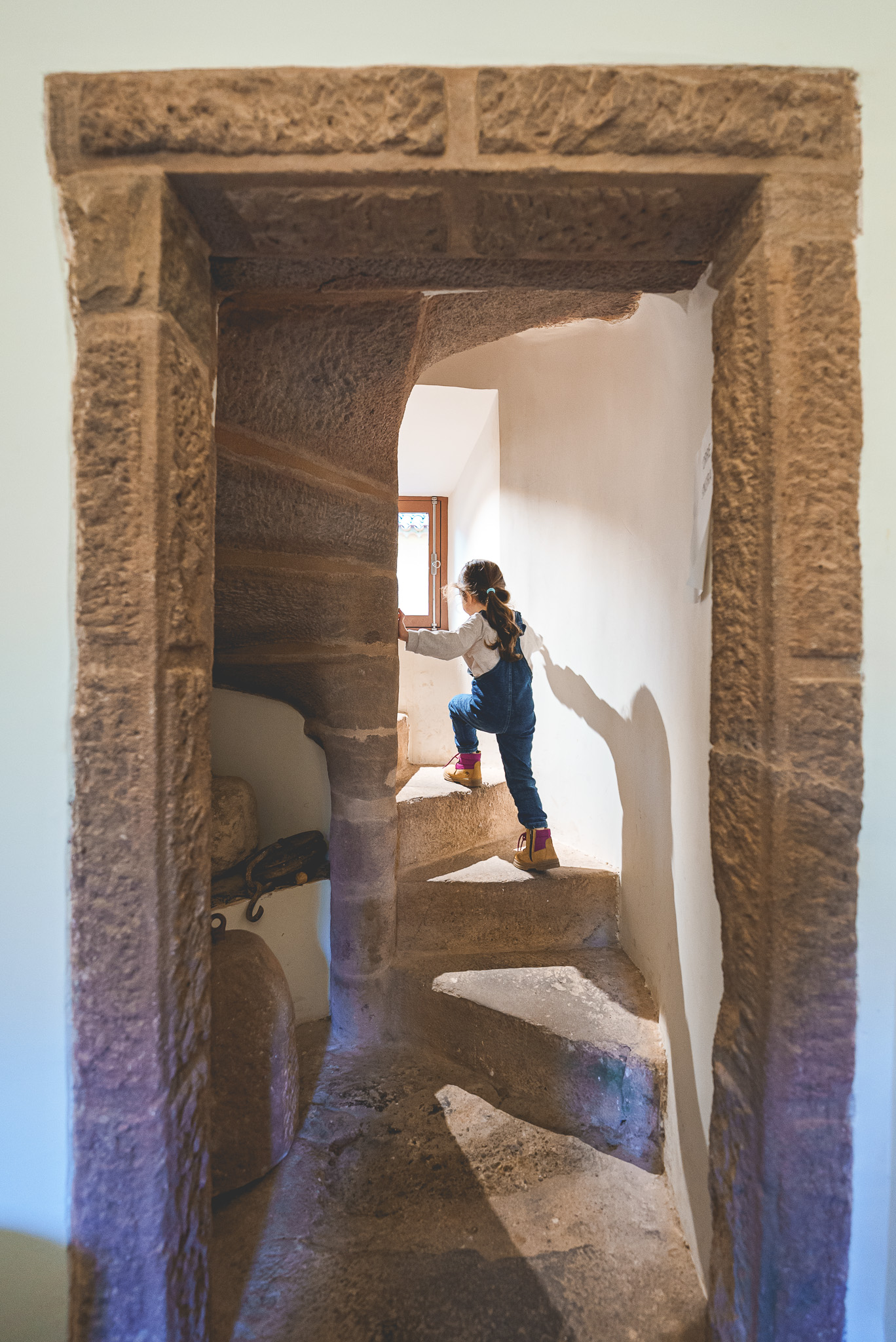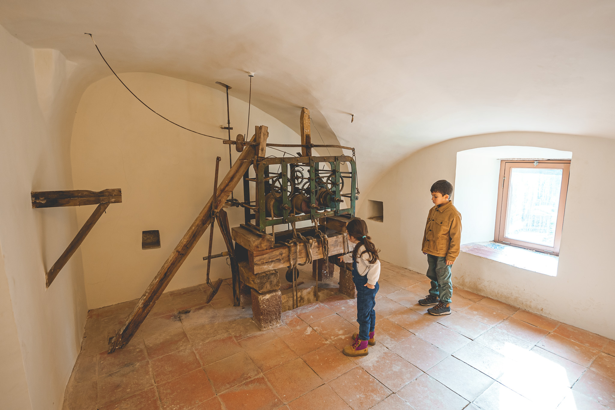 O ponto alto da visita foi sem dúvida a subida à torre sineira, onde temos de subir 54 degraus em caracol até aos sinos e onde adivinhem… se pode tocar o sino!! A Madalena ficou eufórica, o Miguel não gostou muito porque é um som forte. Ele é bastante sensível, até nestas coisas dos sons e das sonoridades!
