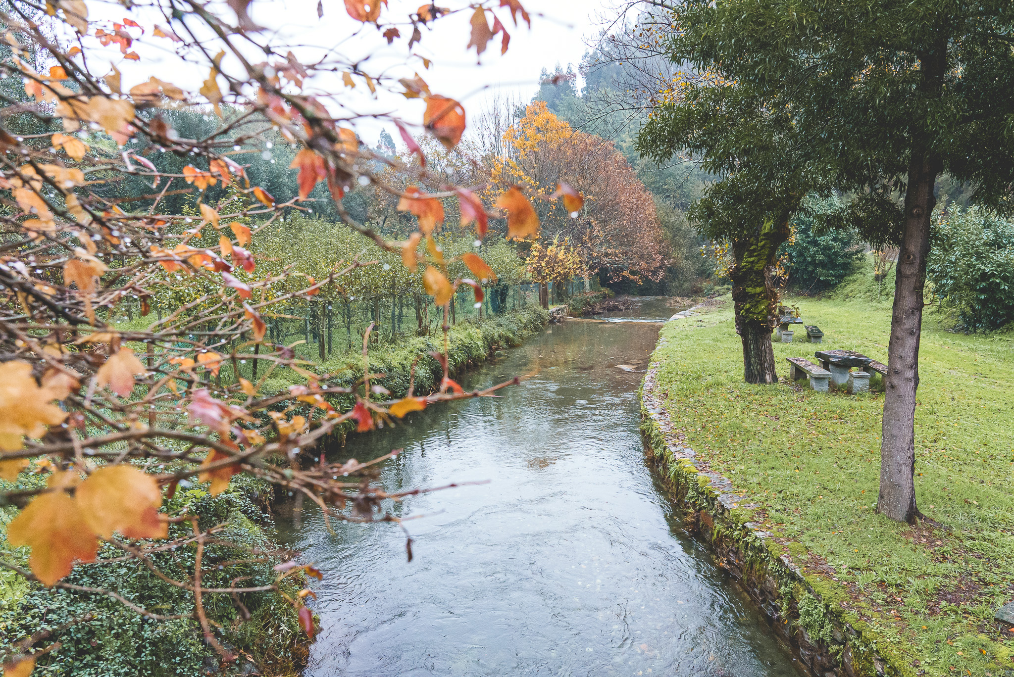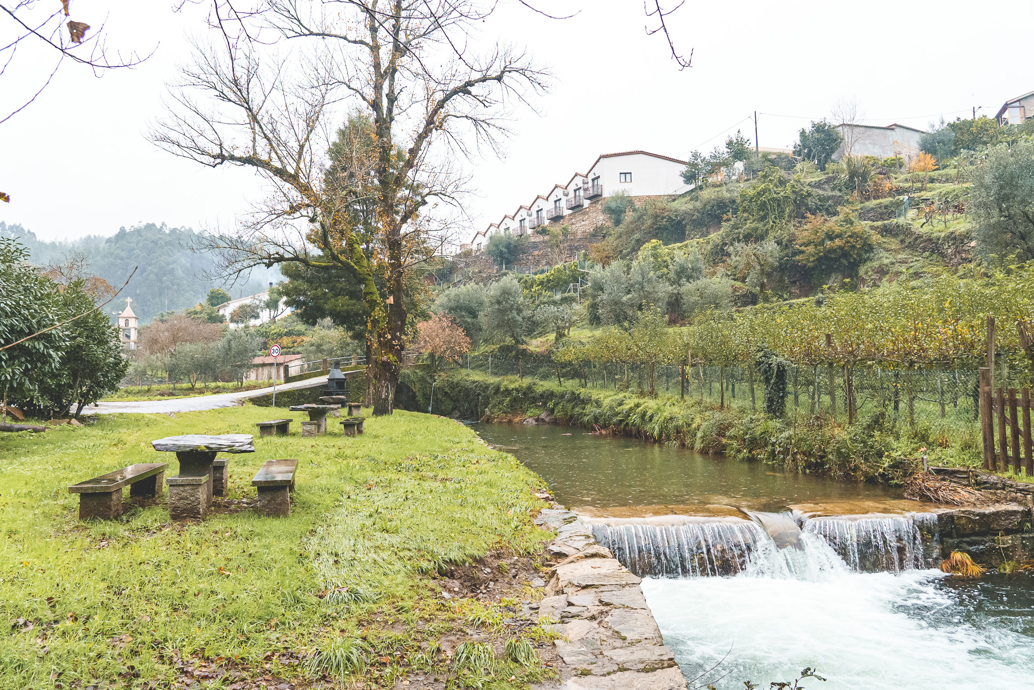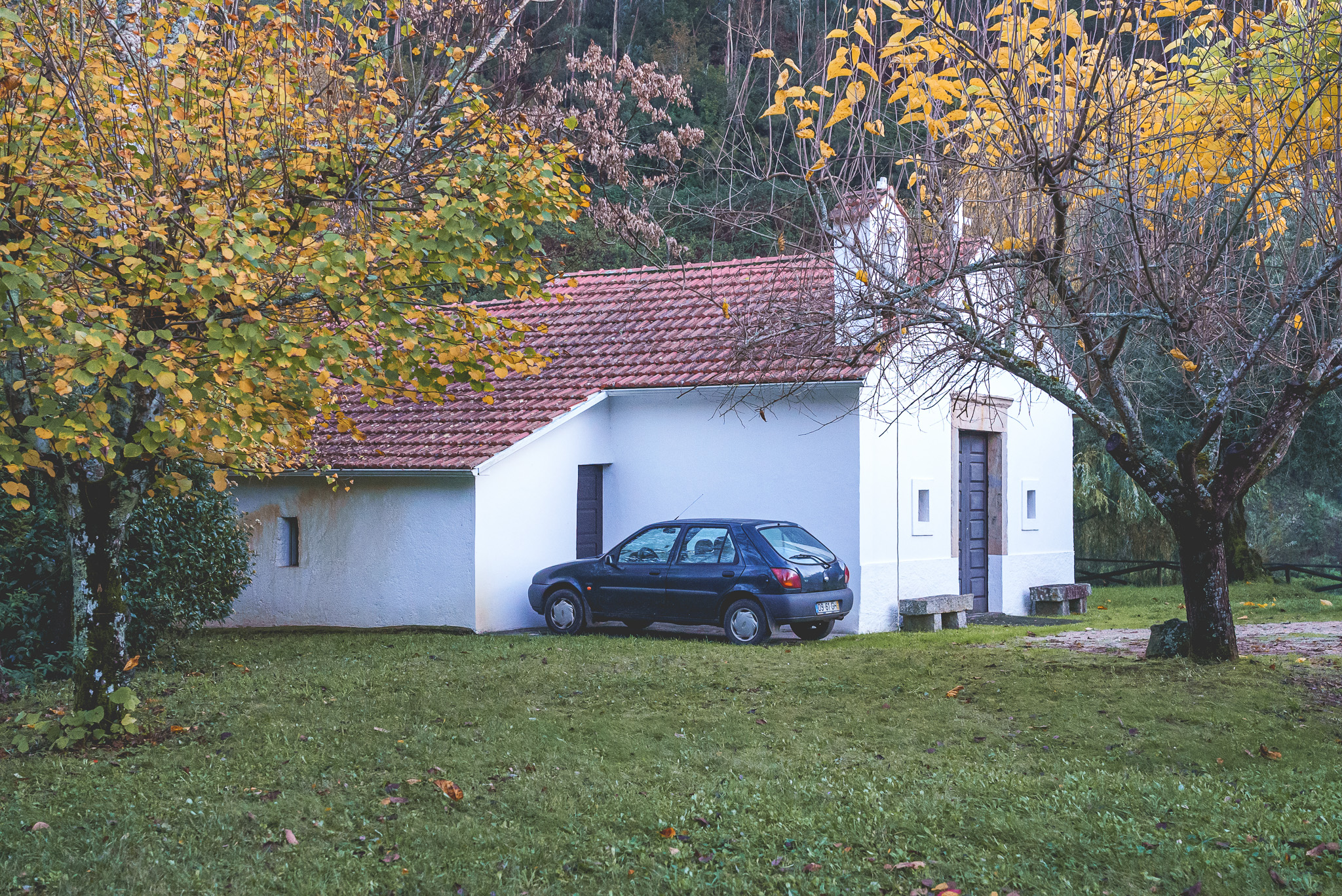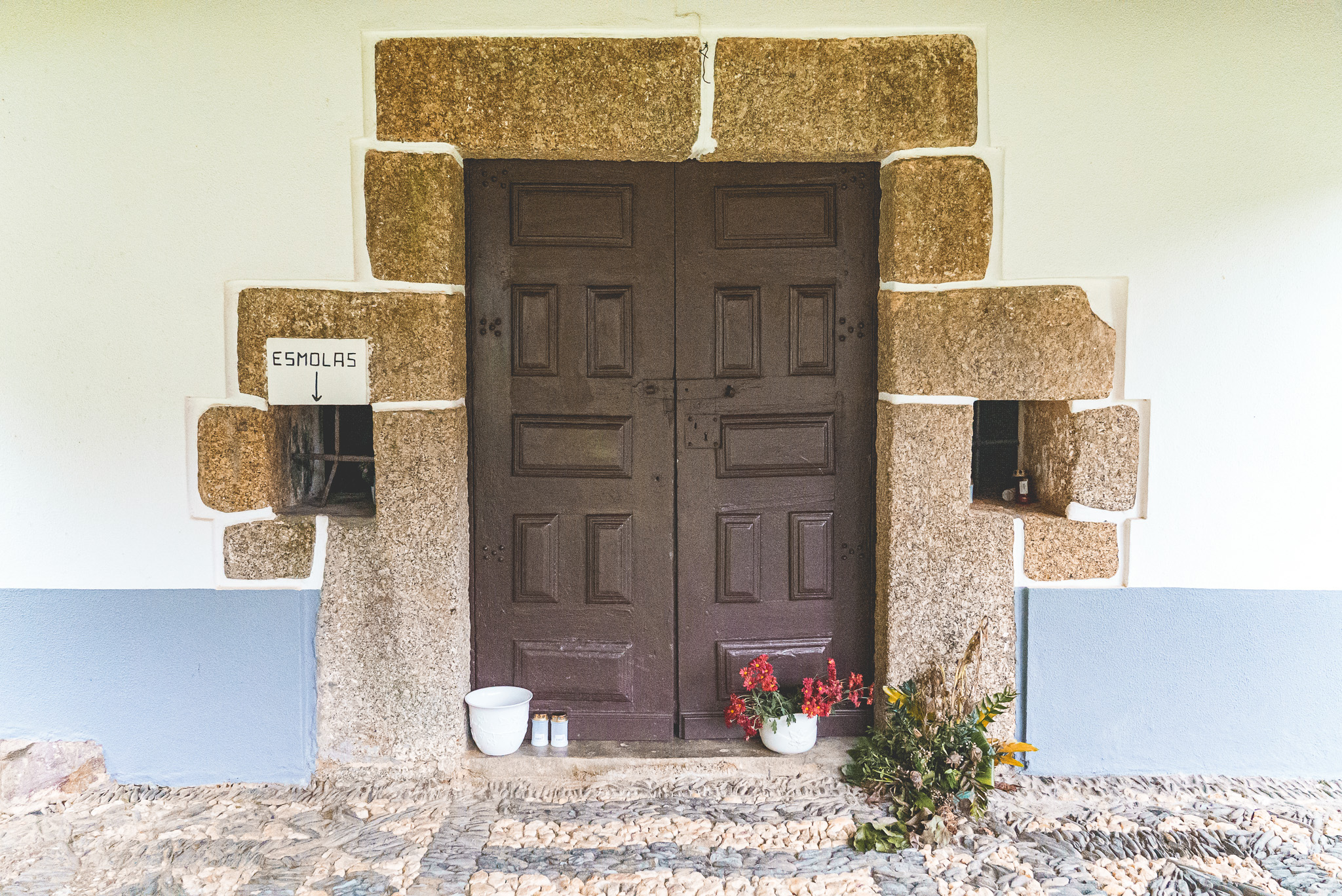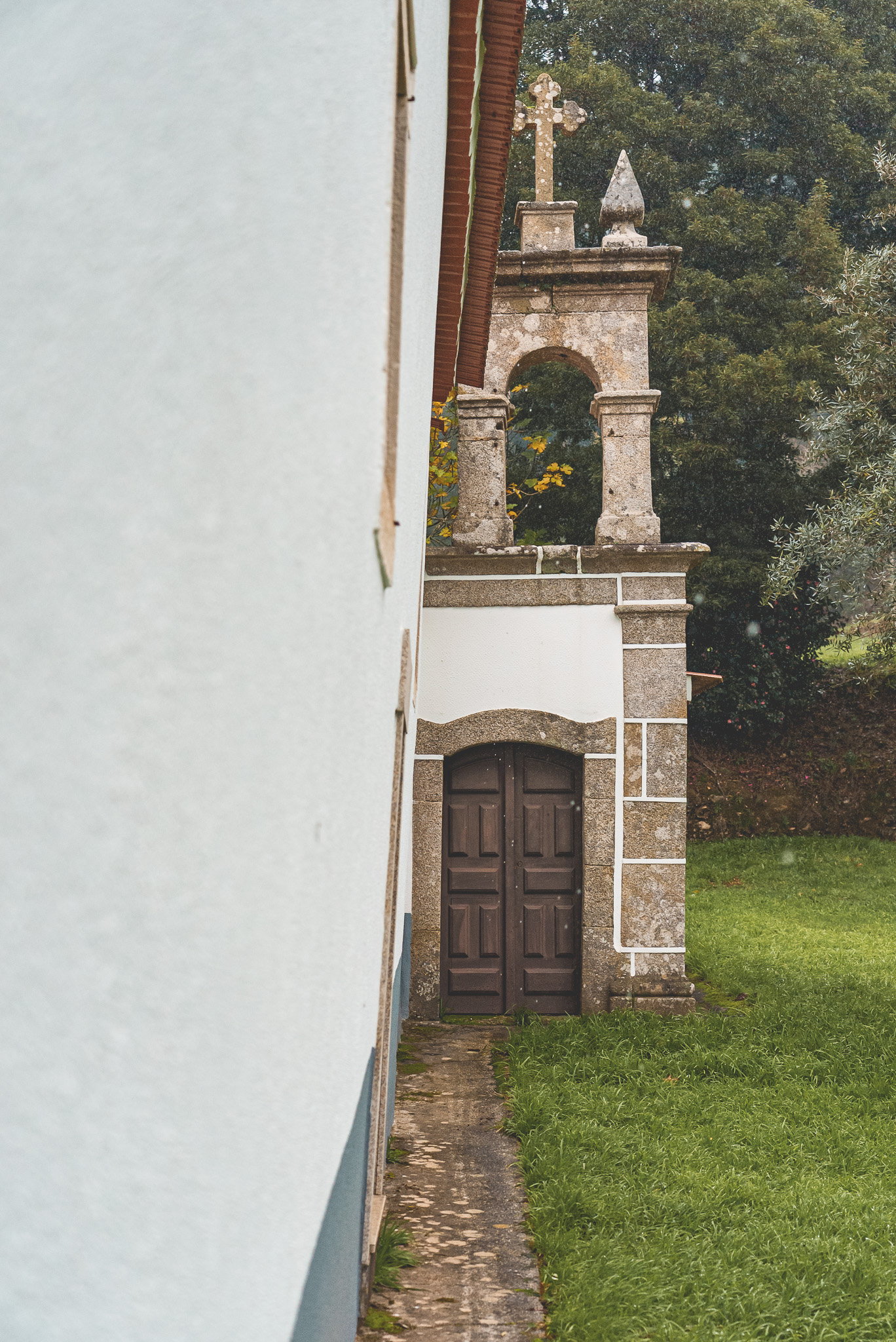 Fomos depois em direção Santuário de Nossa Senhora do Chão dos Calvos, uma zona cheia de eucaliptos e por isso com aquele cheiro característico, pelo menos para mim, das Beiras. Começou a chover imenso, mas ainda deu para ter uma ideia da beleza do local.