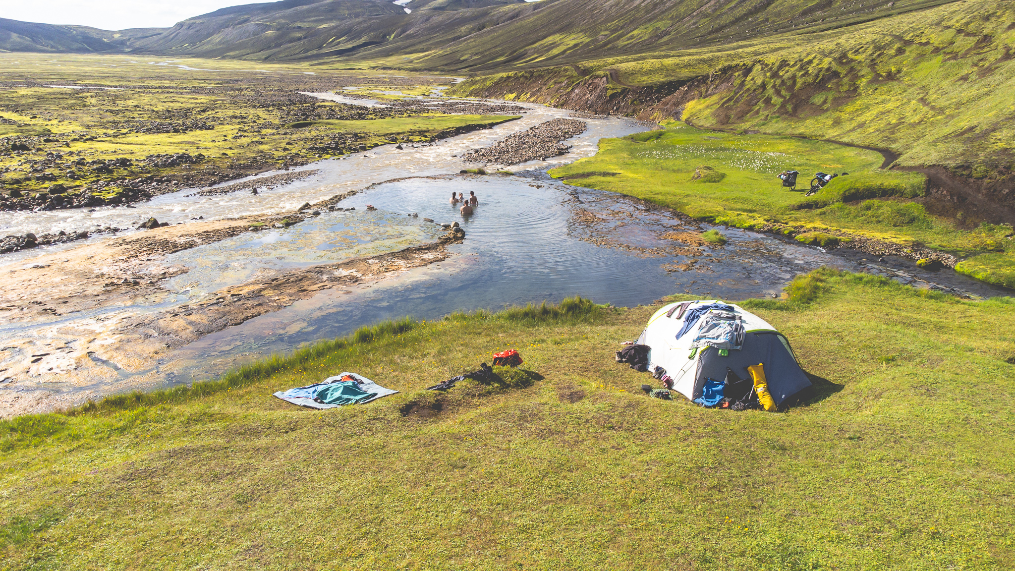 Já estávamos no 5º dia da travessia, reservado para atravessar o espetacular deserto de areia preta o Maellifelsandur. Depois de passarmos a montanha Maelifell chegámos ao refúgio de Strutur onde íamos começar uma das mais difíceis jornadas de toda a viagem. O guarda do refúgio tinha dito que o caminho era difícil, mas até se fazia de bicicleta, mas a realidade foi outra! Tínhamos 7kms pela frente por uma pista abandonada quase invisível.